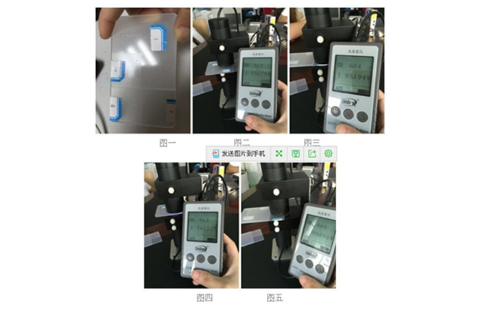 這次收到了一個客戶樣品(如上圖),測試不同四個點的透光率,樣品上可以看得出不同地方磨砂程度和厚度不同,這種樣品屬于乳白磨砂材料,只能用乳白材料透光率儀LS117來測試,測試數據分別如下圖(圖二、圖三、圖四、圖五),不同地方的透光率不同,最高達到93%,最低的有76%。
